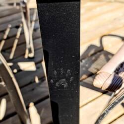 Maar dus, François. Na zo'n lange dag konden we pas rond 22 uur eten. Lekkere steak, tomatensalsa, naanbrood erbij, fles rode wijn... Klinkt goed? Dat vond onze nachtelijke bandiet ook. We hoorden tijdens het eten (in het zo goed als donker - we hadden enkel 1 klein lampje) heel de tijd geritsel naast ons. Ritsel ritsel. Niks te zien. Kraak kraak. Weer niks te zien. Dichterbij geritsel? Daar stond ie dan: François de wasbeer. Die had ook wel wat zin in een fles Tempranillo en steak. Djeezes, best hard schrikken. Het beste was dat ie ook verschoot en wou wegvluchten tussen het hek en het huis van de buren, maar hier te dik voor was. Hilariteit alom als we hem rustig naar beneden zagen schuiven met z'n buikje tegen het hek. De pootafdruk de volgende dag op de tafel is wel bewijs dat ie nadien nog even is komen checken of er niks te rapen was. Too bad François - deze Belgen hadden honger.Read more