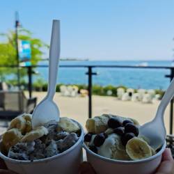 Nadien hebben we voor de rest van de dag ontspannen aan het water in Trillium Park, waar we enkele dagen geleden ook al waren. Genieten met een zelfgemaakte banana split, live muziek, schaduw... Een ideale plek om wat "mensen te gapen"...