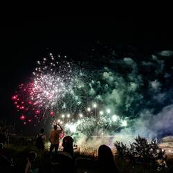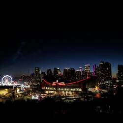 Aangezien we het vuurwerk van gisteren wel echt mooi vonden, besloten we om het 's avonds nog eens mee te pikken. Deze keer, omdat we geen tickets hadden voor vandaag, moesten we wel een alternatief zoeken. Scotman's Hill is blijkbaar de place to be hiervoor. Het is een heuvel vlak naast de arena van het vuurwerk. Je krijgt er ook nog eens een prachtig zicht op de skyline van Calgary. We konden er genieten van de lichtshow voor een tweede keer.