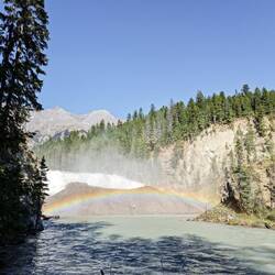 Wapta Falls is net zo indrukwekkend. Een steile helling naar beneden klauteren en je staat onderaan een gigantische waterval waar toevallig nog eens een regenboog aanwezig is. Geen Photoshop dus. ;)