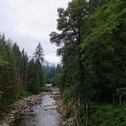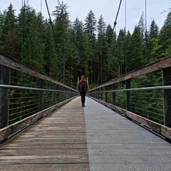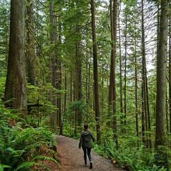 Na ons ontbijt begeven we ons naar de Rainforest Trail vlak naast de zee. Het is best een simpele wandeling waar je tussen de gigantische naaldbomen wandelt over een houten pad van planken. Fijn om eens te doen, maar het voelt niet echt aan als een wandeling door "de natuur".