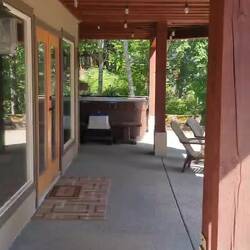 Het optrekje van de kerel in kwestie is een gigantische villa vlak naast het meer. De bovenste twee verdiepingen zijn privé, maar het gelijkvloers is van ons voor drie dagen. Aangezien de eigenaar er zelf niet is, voelt het toch een beetje van "ons". We beschikken over: slaapkamer, badkamer, woonkamer, BBQ, jacuzzi, steiger met ligzetels, zalig koud water om in te plonsen, kano, gevulde koelkast ... Niet dat de vorige verblijfplaatsen slecht waren (verre van zelfs!), maar dit voelt toch wel echt als een "vakantie in een vakantie" - zeker met de heerlijke 28 graden en stralende zon.