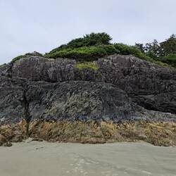 Van een zonnige 26 graden 's ochtends rijden we nu naar de westkust van Vancouver Island, waar het een 14tal graden is overdag. De wind van over de oceaan voert heel koude lucht aan waardoor het in de zomer eigenlijk bijna nooit boven de 22 graden is. Een hele aanpassing qua klederdracht, me dunkt. Zie het verschil tussen foto 1 en 2 maar eens.