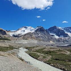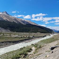 Volgens de GPS doe je er ongeveer 3 uur over, maar wij trekken er op het gemak toch 8 uur voor uit. We volgen de Athabasca rivier eigenlijk in de omgekeerde volgorde. We beginnen bij het "einde" - de water Athabasca Falls, om nadien naast de Athabasca River te wandelen en ten slotte te eindigen waar deze begint bij de Athabasca Glacier.