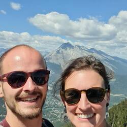 Gelukkig stonden we even nadien al boven en konden we genieten van het mooie uitzicht over Banff, de Bow rivier en Lake Minnewanka. Ook wel eens fijn dat je niet buiten adem bent van 2 uur klimmen om dan een uitzicht te zien. :) We doolden er twee uur rond vooraleer we aan onze tocht naar beneden (inclusief gilletje) begonnen.