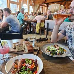 Over honger gesproken: de dag sluiten we af met een (vloeibare) maaltijd in een lokale brouwerij met zicht op de baai van Ucluelet.Read more