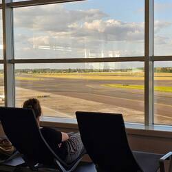 Wat ze ook goed kunnen die Japanners, is rijen vormen. Zo van de lange rijen aan de veiligheidscontrole om 23u34 terwijl de laatste trein naar het centrum vertrekt om 00u08. Wonder boven wonder halen we nog de monorail en hebben we nog net genoeg energie voor een korte wandeling naar het hotel. Een typisch Japans, klein kamertje is voor deze vermoeide reizigers de hemel voor 12 uur slaapgenot om de jetlag weg te werken. Slaapwel!Læs mere