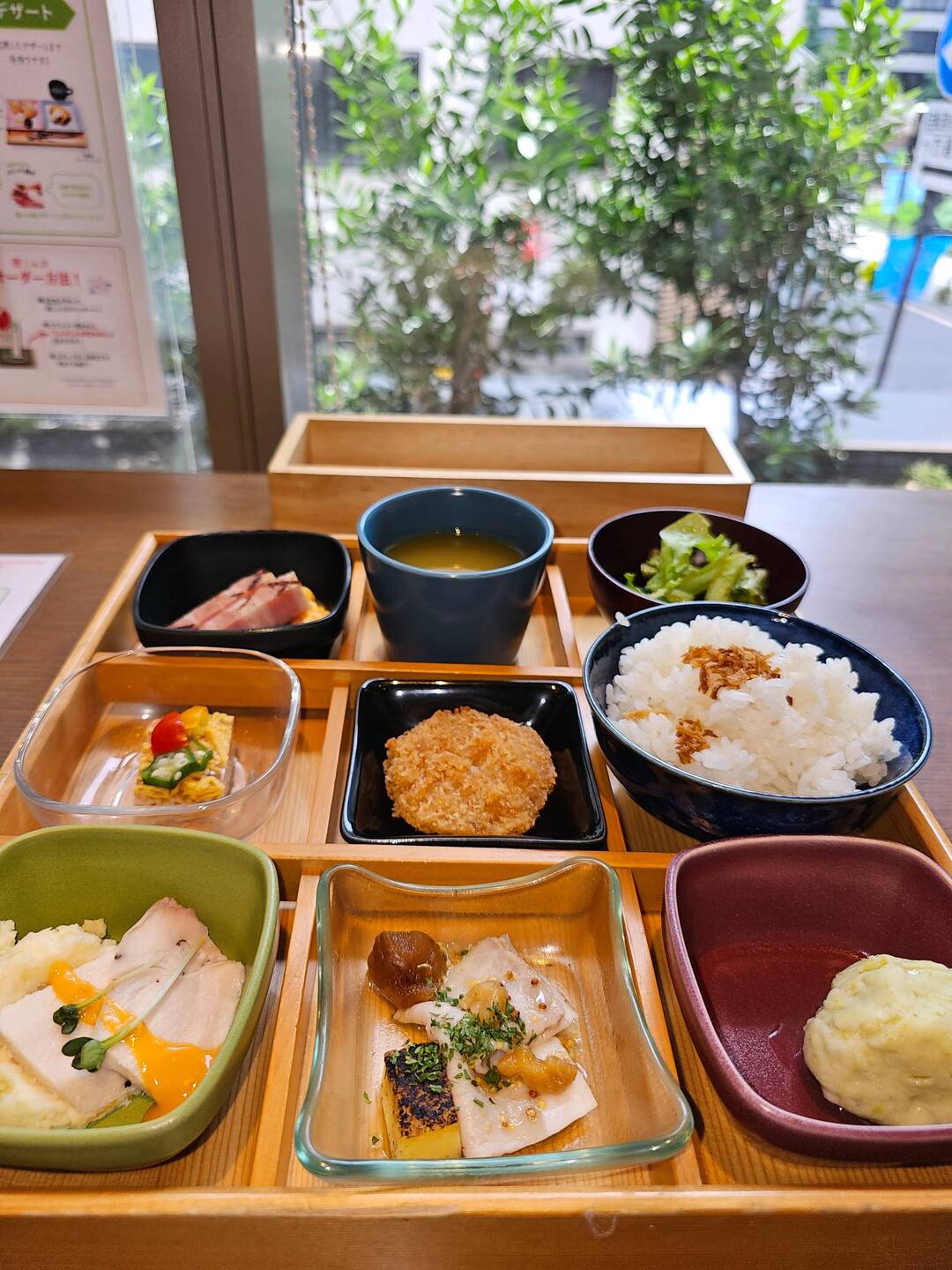 Er is weinig dat zoveel deugd kan doen, dan je jetlag 12 uur lang uitslapen en dan gewoon kunnen aanschuiven aan een heerlijk ontbijt. Al ontdekken we wel al heel snel dat Japan een land is met veel regeltjes en systemen die goed in elkaar steken, maar wel het soms wat onduidelijk maken voor twee nog onervaren, barbaarse westerlingen. Gelukkig is er voor alles een handleiding. Zo dus ook voor het ontbijt. Een dienblad met 9 lege vakjes mag je gaan vullen in verschillende rondes. Een speciaal varkensgerecht bestellen dat doe je via een ander labeltje. Er is een apart dienblad om te gaan bijhalen... Het is wel echt allemaal enorm lekker, ook al herkennen we maar de helft van wat we eten.