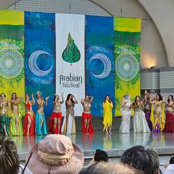 Eva was niet meer te houden na het zien van al dat testosteron, dus in sneltempo knalden we door Yoyogipark. We wisten echter toen nog niet dat de danspret nog niet was afgelopen ... We merkten immers aan de overkant van de straat nog luide muziek en besloten te gaan kijken. Er was een markt aan de gang met wat prullaria, eten en drinken... Arabian Festival was de naam en er waren ook twee podia. Eentje waar we een Japanse rapper bezig zagen (verrassend goed!) en eentje waar, ahum, toevallig een buikdans competitie aan de gang was. Eva ontdekte meteen waarom 7 juli al enkele maanden rood omcirkeld was op de kalender. Het was een amusante show die al snel de naam "Eurovision voor buikdansers" van ons kreeg. De beste hit was die van "Zatte Lana" - de enige tekst die we konden verstaan. Was het de hitte, de hoeveel Sapporo bier of de performance? Geen idee, maar 's avonds was ik er nog door overrompeld zoals je op een foto kunt zien.