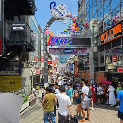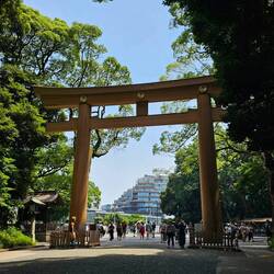 De uiterst efficiënte metro brengt ons in geen tijd naar Harajuku waar we meteen Takeshita Dori ontdekken. Deze bekende straat is vooral bekend omwille van de modieuze jeugd die er rondhangt en dat er zoveel modetrends ontstaan. Het is inderdaad een mengelmoes van stijlen, kitsche spullen en heel veel drukte. Het is de eerste keer dat we zoveel mensen bij elkaar zien in Tokyo. Het is dan ook vreemd dat er op een steenworp Meiji Shrine ligt - een Shinto tempel die vooral veel rust uitstraalt. Vooraleer we dit sereen heiligdom betreden blijven we nog even staan bij wat straatartiesten die bij de ingang het beste van zichzelf aan het geven zijn, al krijgt de bejaarde, niet bij de band horende achtergrond danser met "Hentai" T-shirt meer aandacht dan de muziek. Het contrast kan niet groter zijn met de achterliggende tempel. De toon voor de rest van de dag is gezet.