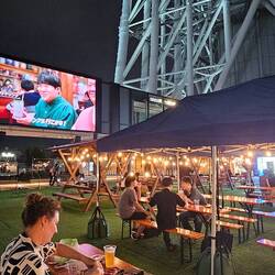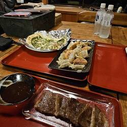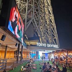 Aan de voet van de toren ligt een winkelcentrum en meestal mijden we dit, omdat het een verzameling is van souvenirs en gadgers, maar we ontdekken hier per toeval een food market met allerlei standjes: sushi, dumplings, gyoza, desserts... We verzamelen er een grote tapas schotel aan Japanse gerechten en eten dit op aan de voet van de Skytree, waar er een gezellige beer garden bezig is. De gyoza, gefrituurde dumplings en pork yakitori gaan vlot naar binnen. Een heerlijke afsluiter van een leuke dag!Læs mere