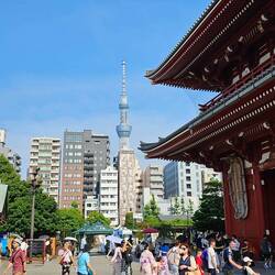Nadien nemen we de metro naar Asakusa - ook wel "Low Tokyo" genoemd omwille van het feit dat het weinig tot geen wolkenkrabbers heeft en vroeger (17de tot 19de eeuw) het entertainment district was van Tokyo. We bezoeken er Sensō-ji en Nakamise Dori - een tempel en bijhorende straat met marktkramen. Het is vooral heel druk en toeristisch - een echte aanrader kunnen we het niet noemen.