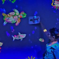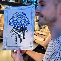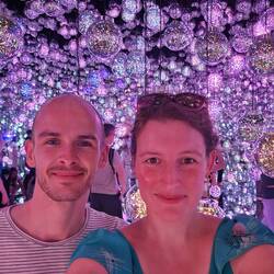 We moeten daarnaast nog wat administratieve zaken regelen (vertaling rijbewijs, trein abonnementen...), dus een erg lange trip is het vandaag niet. Wel eentje om niet snel te vergeten. We bezoeken er namelijk, maak je klaar, teamLab Borderless: MORI Building DIGITAL ART MUSEUM Azabudai. Deze waterval aan woorden is de naam van een gigantisch museum waar met digitale installaties een ervaring wordt gemaakt waarbij de beelden en kunstwerken zweven doorheen het museum. Er is geen vaste route en omdat de beelden toch doorzweven, is elke kamer telkens anders. Daarnaast zijn er ook een heleboel constructies die ervoor zorgen dat je je op een buitenaardse planeet waant. Een greep uit de verschillende omgevingen: een installatie met duizenden bollen die oplichten als je er dicht bijkomt en vervolgens het licht doorgeven aan de nabijgelegen bollen, een kamer waarbij er krijgers op rook worden geprojecteerd, een tunnel van licht en beelden die zo snel gingen dat Frank De Winne zou zeggen "nu is het mooi geweest", een stoet van dansende dieren die doorheen heel het museum lopen en reageren op aanraking... Als slot konden we er nog onze eigen kwal en schildpad maken en loslaten in een digitale oceaan voor andere bezoekers. Ze zweven er nog rond waarschijnlijk. Echt een heel fijne ervaring!