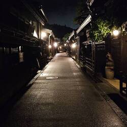 Om het eten te laten zakken wandelen we nog even door de donkere straten met hier en daar wat sfeerverlichting. Het lijkt wel alsof we alleen zijn in de stad... Takayama is echt een enorm fijne stad en echt een aanrader als je ooit naar Japan zou gaan!Læs mere