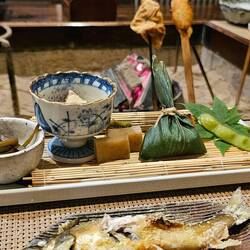 De avond sluiten we af met een kaiseki maaltijd die inbegrepen is bij ons verblijf. Dit is een uitgebreid diner met verschillende gangen, bereidingswijzen... Een belangrijke eigenschap is dat de ingrediënten allemaal lokaal en vers moeten zijn. In een gigantische kamer speciaal voor ons (er is zelfs een "Cools" bordje) worden we enorm vriendelijk bediend. We krijgen er het ene na het andere bordje met lekker eten, maar herkennen 90 procent van de ingrediënten gewoon niet. Daarnaast bakken we ook vis op een stokje, tofu, hida beef, rijstballetjes... op een vuur in het midden van de enorme kamer. Er ligt een menu, maar dit is volledig in het Japans. Google translate zegt het volgende:
