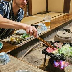 's Avonds is het weer een echte spa behandeling met warmwaterbron, luxe maaltijd ... De maaltijd was trouwens compleet anders dan gisteren. Het hoofdgerecht was deze keer Sukiyaki, een soort van stoofpotje / eenpansgerecht met Hida beef, verse groenten, sojasaus.... dat weer voor onze neus werd bereid. Het beste wat we al gegeten hebben hier!