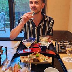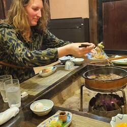 De avond brengen we verdiend door in onze onsen en moet onze voetjes weer onder een kaiseki tafel.Læs mere