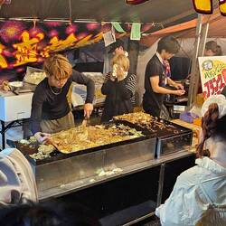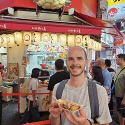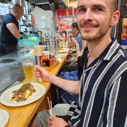 's Avonds kiezen we ervoor om Okonomiyaki te gaan eten in een restaurant dat we eerder al hadden gespot. Okonomiyaki werd eerder door een AirBnB-uitbater beschreven als "soul food for locals". Online wordt het vaak de "Pizza van Japan" genoemd. Denk een grote grillplaat waarop noedels worden gebakken tot een krokante bodem. Daarop wordt een berg kool geplet, met nog een heleboel eieren en allerlei toppings die je zelf kan kiezen: spek, look, spinazie... Het geheel wordt dan afgewerkt met Okonomi saus, wat een kruidige, zoete sojasaus is. Dit wordt allemaal voor je neus gemaakt op dus een gigantische grillplaat in een restaurant dat enkel Okonomiyaki serveert. Het restaurant dat we hadden gevonden was echt een schot in de roos met heerlijke Okonomiyaki, koud bier en een chefkok die echt voor z'n vak leeft. Hij had zelfs een eigen poster gemaakt van hem met z'n favoriet bier in de stijl van een reclame advertentie. De reden dat we er ook zo'n fan van waren: toen we twee minuten binnen waren en nog volop aan het kiezen waren uit een menukaart kwam er nog een westerling binnen. De enige plaats in de overvolle zaak? Vlak naast ons... Op zich niks mis mee, tenzij dat het om het type ging dat binnenkwam: ladderzat, luidruchtig en extreem onbeschoft. Hij kwam er enkel bier drinken, probeerde wat te praten tegen ons, maar eigenlijk was het eerder onvriendelijk gebrabbel. Ja, zo'n type dat heel je gezellige avond naar de knoppen helpt. Zonder dat we het beseften had de uitbater in een oogwenk toch plaats gemaakt dichter bij hem voor ons omdat hij zelf ook niet was opgezet met de hele bedoening. Toen we weg werden begeleid, wou de zatte japer ons volgen, maar viel gewoon op de grond... Zelfs dan zijn Japanners nog vriendelijk en hielpen hem recht. Het was pas toen hij het drinken van andere klanten omstootte dat de uitbater hem de deur wees op een wel heel kordate manier. Een heel vreemde ervaring, want Japanners zijn normaal erg terughoudend. Een bewogen dag met een bewogen einde dus. Wel besluiten Eva en ik alles in huis te halen om in België ook Okonomiyaki te maken - zo ongelooflijk lekker! Dan kunnen we zelf de zatte japer spelen in ons eigen huis. :)Læs mere