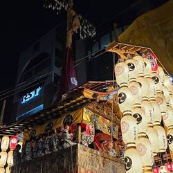 Wie overigens wel te vinden was om door de regen te wandelen, dat waren alle Japanners in een straal van 100 km rond Kyoto om Gion Matsuri te bezoeken. On-ge-loof-lijk hoeveel volk er was op dit meerdaagse event dat meer dan duizend jaar oud is en waarbij er praalwagens van enkele verdiepingen hoog door de stad worden getrokken op de laatste dag. De dagen ervoor staan de wagens verspreid door enkele straten met heel veel eetstandjes errond. Rond de 250.000 mensen lopen door de straten op zoek naar eten en de praalwagens. Toch hebben we heel wat eten kunnen bemachtigen: takoyaki (inktvisballetjes met saus en visvlokken - het is veel beter dan het klinkt), Okonamiyaki (pannenkoek met kool), rijstpizza met ei en als dessert geglazuurde aardbeien. We hebben er enkel een kwart miljoen hongerige Japanners voor moeten trotseren... Sowieso wel een hele beleving die Gion Matsuri - zeker in de top drie van drukste bedoelingen die we ooit hebben bezocht.