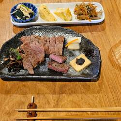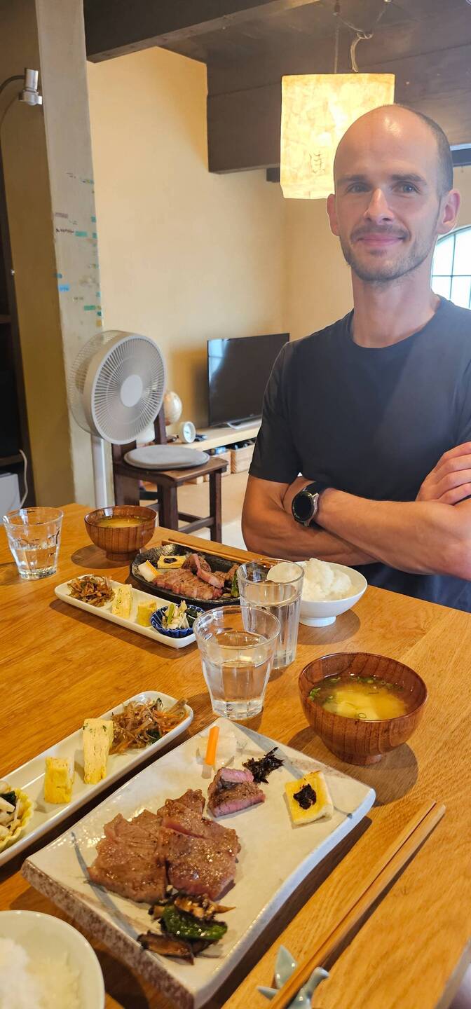 Deze authentieke beleving moet echter wachten tot morgen. Het enige waar we zin in hebben na 5 uur reizen is lekker eten en ontspannen. Gelukkig zijn ze bij onze verblijfplaats enorm vriendelijk en zorgen ze voor een reservatie bij een Japans BBQ restaurant. Het is immers zo dat deze streek bekend staat voor "Hida beef" - rundvlees dat blijkbaar evengoed is als Wagyu. Zo'n gemasseerd koetje gaat er zeker en vast in na zo'n lange treinrit. Gelukkig had onze host gereserveerd, want het restaurant blijkt heel populair te zijn bij de lokale bevolking - een bordje met "Jeroen" sprong meteen in het oog. Toen we binnen kwamen was er al een jonge ober die met heel erg veel paniek ons aankeek. De jonge knaap kon geen Engels (bijna niemand trouwens) en had verloren met strootje trek om ons te bedienen. Toch konden we met gebaren en gezond verstand wel volgen wat we moesten doen. Vleesje op de grill, saus mengen, vetklompje om de grill opnieuw in te vetten... We deden waarschijnlijk hier en daar wel iets mis, maar we merkten er niks van. On-ge-loof-lijk lekker, zo'n Japans koetje. We ontdekken er ook onze nieuwe favoriet: hida beef sushi.