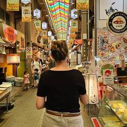 Overal in Kyoto is het momenteel erg druk omwille van de Gion Matsuri. We besluiten dan ook maar wat meer het noordelijk gedeelte van de stad te gaan ontdekken. Hiervoor lopen we eerst door Nishiki Market, een gezellige winkelstraat met allerlei etenswaren. Ook pikken we Nijō Castle mee - een kasteel uit de 17de eeuw met omliggende tuinen. Het is duidelijk een fort gebruikt om de stad te verdedigen en bevat dan ook torens, verdedigingsringen, samoeraizwaarden ... (sorry papa, deze kunnen we echt niet mee smokkelen)