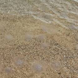We hadden echter wat pech met andere zaken: 36 graden was echt wel té warm om in te fietsen. Elk strand waar we een plons in de zee zouden nemen om af te koelen was ofwel betalend (en veel) ofwel zaten er duizenden kwallen (check foto). We hebben dus uiteindelijk een lange, warme, maar mooie tocht gefietst, maar moesten om de 5 km wel stoppen om te drinken, af te koelen in een café, t-shirt uit te wringen... Misschien toch nog eens terugkomen naar Japan in de winter?
