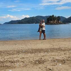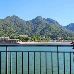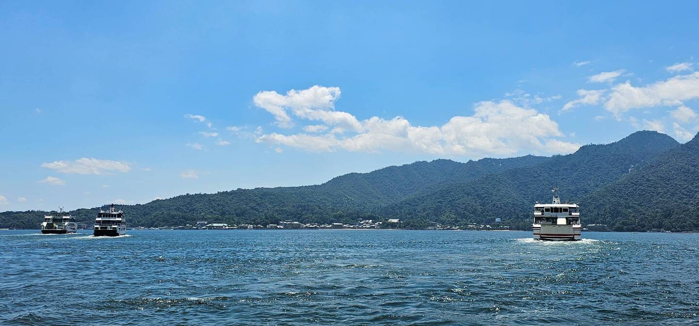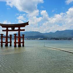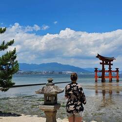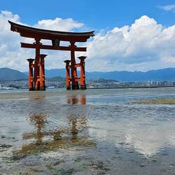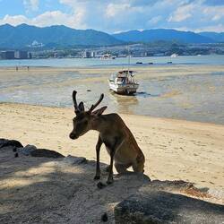 Aangezien we geen zin hadden in een drukke stad vandaag, hebben we de trein en ferry genomen naar Miyajima. Dit is een "klein" eiland dat niet ver ligt van Hiroshima en vooral bekend staat omwille van de tempel en bijhorende torii poort die in het water staat bij vloed. Wij zijn er vooral om wat te chillen aan een strand, aangezien het bij de tempel en poort lekker druk is en dat we dit net willen vermijden vandaag.