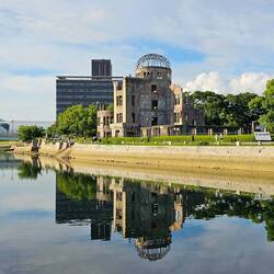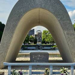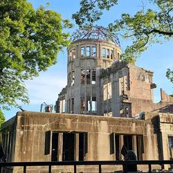 We laten het rustige Onomichi achter ons en nemen een korte treinrit naar Hiroshima, waar we twee nachten verblijven. Het valt meteen op wat een mooie stad dit is. Het is overal groen en er lopen veel rivieren door.
