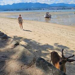 Het is dan ook een fijne, rustige dag die vooral bestaat uit relaxen, eten en drinken halen, meer relaxen, eten en drinken weghouden uit de muiltjes van de herten die op het eiland leven, krabjes spotten op het strand, cocktails halen, zonnecrème smeren X23 ... Een ideale relax dag die we allebei heel erg konden gebruiken! Een kort verslag, maar wel een fijne dag!Læs mere
