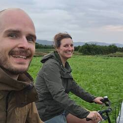 * Gietende regen van meer dan 3 uur - toch met de fiets erdoor, anders geen eten (en aperitief). Toch nog plezier gehad met onze roze bolides.