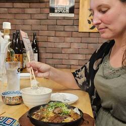 Ook iets om nooit te vergeten: de man naast ons was ook niet van in de buurt, volledig "lost in translation" en had zonder het te beseffen runderstong besteld. Rauw. Als in: moet je nog bakken op de grill. Wist ie niet. Moet je je voorstellen dat je met stokjes probeert een tong vast te grijpen om er vervolgens "tong sumo" mee uit te voeren om er maar een klein stukje van te kunnen eten. Dat gaat niet gemakkelijk en het zicht zou niet misstaan op een DVD die terug te vinden is op de 11ste verdieping van een speciaalzaak in Akihabara. Het geval was al half op vooraleer de ober toch maar even kwam zeggen dat de grill er voor een reden stond.