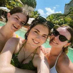 Heute war ich mit Rebi und Julia im Palmilla Beach Club. ☀️🌸🌴💛💚🩷