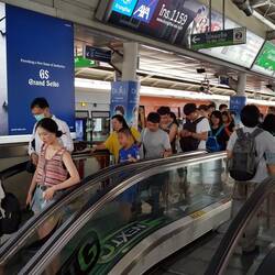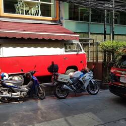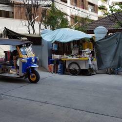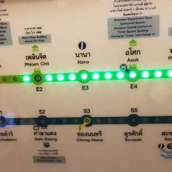 Nach einem Powernap mache ich mich auf in die Stadt. Da das hoteleigene Tuktuk gerade nicht da ist, geht's zu Fuss zur BTS-Station Asok. Das Gehen auf dem Trottoir erweist sich als Hindernisparcour.Læs mere