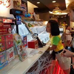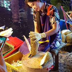 Auf dem Rückweg schalte ich noch einen kurzen Halt in der Lebensmittelabteilung des Siamcenters ein. Auch dort könnte ich noch eine Durian erwerben. Es gibt aber Durianerzeugnisse, welche ichLæs mere