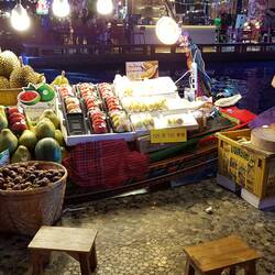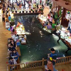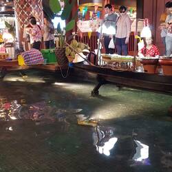 Im Innern angekommen öffnet sich ein Meer von einzelnen Marktständen. Sogar einen Floatingmarket gibt es. Etwas kleiner zwar, als der Originale, aber immerhin...