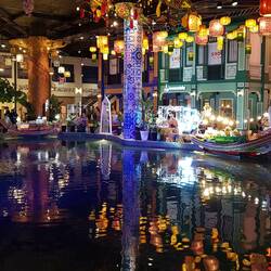 Die beleuchteten Wasserspiele kommen in der Abenddämmerung - ja die Zeit vergeht viel zu schnell - besonders gut zur Geltung. Um in diesem Center alles zu sehen, müsste man mehr Zeit investieren.Læs mere