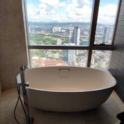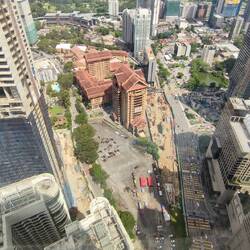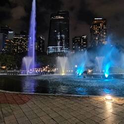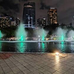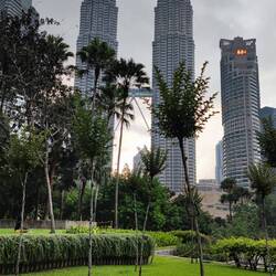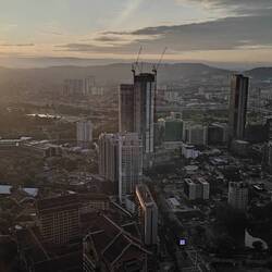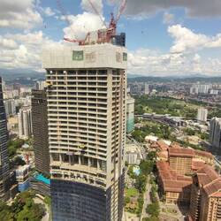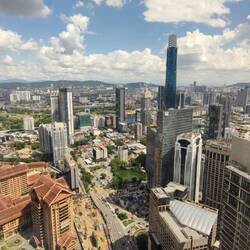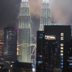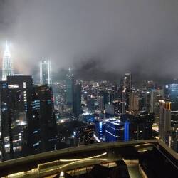 Dies wird die letzte Nacht in KL für uns werden und wir genehmigen uns in der Rooftopbar Vertigo in - oder besser auf - unserem Hotel noch einen feinen Drink. Das Gewitter ist sich am Verziehen.Read more