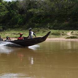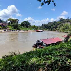 Mit einem überdachten Longboat werden wir den Fluss Sungai Tembeling hinauf gefahren. Die Flora zeigt auch hier ihre aufregendsten Grüntöne. Von der Fauna sprechen wir nicht gross. UnterwegsRead more
