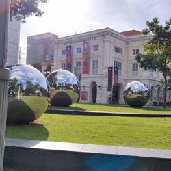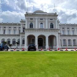 Heute gehen wir zum National Museum. Im Gebäude mit den bunten Fenstern befand sich früher die Polizei. Heute sind dort ein paar Ministerien untergebracht.