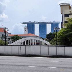 Der Verdauungsspaziergang führt uns dem Singapur River entlang, am Boat Quay und am Raffles vorbei, zur Marina und zum Merlion. Der Anblick dieser Szenerie ist immer wieder entzückend.