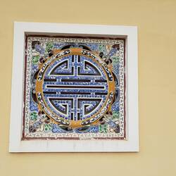 Symbolik hat hier sowieso einen grossen Stellenwert. Allgegenwärtig ist das Zeichen für Glück, Reichtum und ein langes Leben: Quadrat (Erde), Kreis (Himmel), Rechtecke = chinesisches Schriftzeichen (langes Leben) und Fledermaus (Glück). Auch Drachen und Einhörner für den König und Phönix und Schildkröte für die Königin sind hüben und drüben auf irgend eine Art und Weise eingearbeitet.