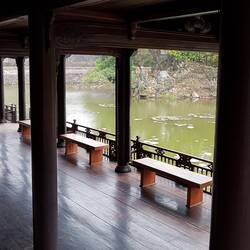 Mit einem Drachenboot setze ich über den Song Huong oder Huong Giang, also den Fluss der Wohlgerüche oder Parfümfluss. Zum Parfüm gibt es auch noch eine Anekdote. Doch dazu später mehr....