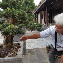 Mit dem Auto geht es weiter zur, auf einer Anhöhe am nördlichen Ufer des Parfümflusses gelegenen, Thien Mu-Pagode. Mit dem siebenstöckigen Phuoc Duyen-Turm ist die Pagode die höchste Vietnams. Um ins Nirvana zu kommen, müsse man sich die sieben Stockwerke hocharbeiten, erklärt der Guide Lâm, welcher seinen Namen nicht mit zwei "m" geschrieben sehen will. Vor der Türe eines jeden Stockwerkes müssen die Sünden abgelegt werden. Nur so sei man zuoberst rein genug, um ins Nirwana zu gelangen.