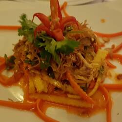 Das Abendessen in einem lokalen Restaurant entpuppt sich als Tellerservice im Hotelrestaurant. Auf dem Magenfahrplan stehen viele leckere Sachen: