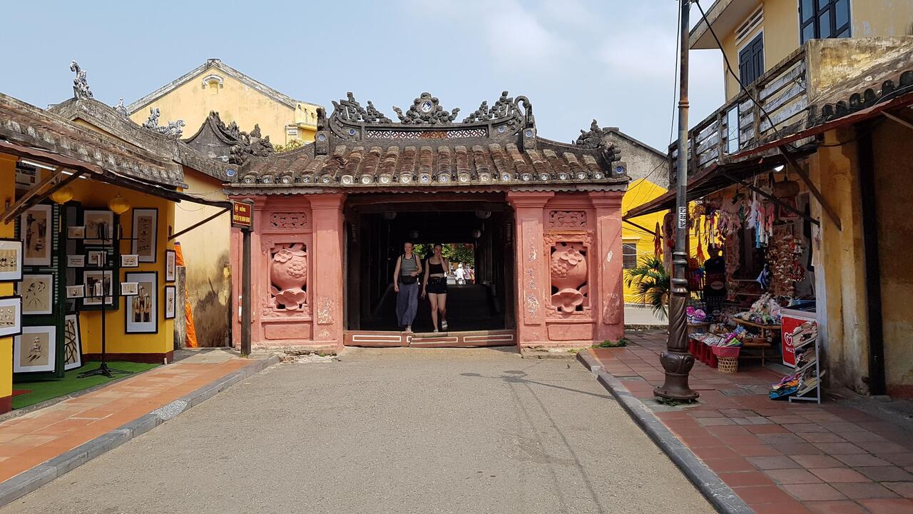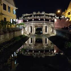 Die Brücke hat das historische japanische Stadtviertel mit dem chinesischen verbunden und ist heute DAS Wahrzeichen von Hoi An. Sie ist 18 Meter lang, überdacht und führt über den Chua Cau, einen Nebenfluss des Thu Bon. Die heutige Form der mehrfach zerstörten und wieder aufgebauten Brücke geht auf das Jahr 1763 zurück. Auf der Brücke befindet sich eine Pagode. Aus Platzmangel ist hier keine Geistermauer zu sehen. Statt dessen sind über der Eingangstüre zwei Augen angebracht, welche die Aufgabe der Geistermauer übernehmen sollen. Andernorts dient ein, mit Draht befestigter, Kaktus dem selben Zweck.
