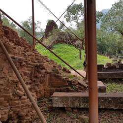 Heute mache ich einen Ausflug zum schönen Berg. Oder auf vietnamesisch: My Son. Dabei handelt es sich um ein weiteres Weltkulturerbe der UNESCO. Leider ist die Tempelstadt der Cham - heute leben noch ca. 170'000 Nachfahren der Cham im Land - im Vietnamkrieg durch die Amerikaner stark zerstört worden. Zahlreiche Löcher und Krater erinnern noch heute daran. Zudem warnen Schilder vor möglichen Blindgängern.