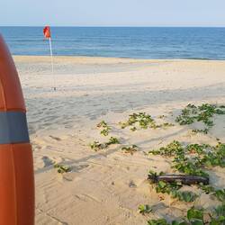 Am Strand liegen einige Haufen mit zahlreichen Fahrradpneus. Ich denke noch bei mir, dass diese bestimmt schon bald das Meer verschmutzen würden.... Dort landen sie zwar tatsächlich. Sie dienen aber offenbar der Muschelzucht. Jedenfalls stehen zwei Pneus mit Muscheln neben dem Eingang.