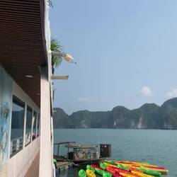 Today we took our cruise through the islands. One advantage of travelling this time of year and on a week day meant that the cruise was only a third full, and there were hardly any other boats around. Our first stop was Cổng chào làng Việt Hải village, where Kong Skull Island was filmed. And you can see why. Towering cliffs and narrow valleys. Next stop was for water sports. Swimming, kayaking and jumping off the boat.Read more