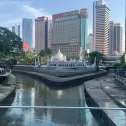 We were off early to explore the central markets and the mosque at the confluence of the two rivers. Investigated which bus to catch, had the money ready and…no money on KL buses. Only bus cards used. 🙁. A taxi driver saw our plight and took us down the road to the markets for 15 RM. $5. AUD. Strolled down to the river as markets opened at 10am. Nice walk along the river. Stopped for juices. Had a flagon of watermelon juice. $5. Took a while to drink but nice. Markets opened and its air cond. Thank you!Read more