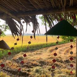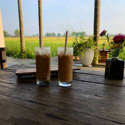 Off on the bikes early to another rice paddy coffee shop. This one was a little further and worth it. Passed rice drying on tarpaulins on the paths to this hidden gem. And the price. $2.50 for 2 x iced coffees. 🙂. Lunch a Banh My and chips. Dinners an excellent Pho and Duck Curry. Have noticed most of the restaurants are residences with food out the front. Family kitchen prepares meals fresh and tasty.Read more